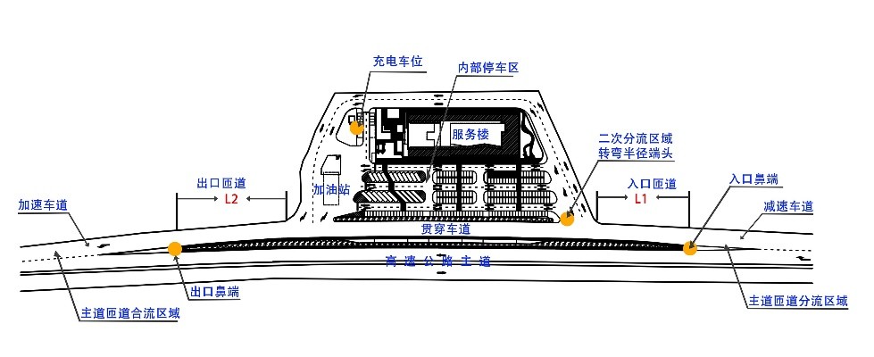 在匝道、貫穿車道等事故高發、安全隱患區域設置自發光地標,替代傳統反光錐筒,提升夜間安全與管理效率;通過綠色標識充電區、黃色標識人行區等“色彩語言”,劃分功能邊界,有效規范停車秩序,減少人車交織風險;在貨車區加裝白色頻閃地標,增強區域感知,有效防范盜竊,保障司乘財產安全。